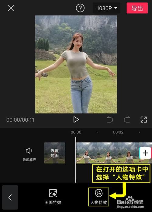 选择人物特效。在打开的底部选项卡中,选择“人物特效”。