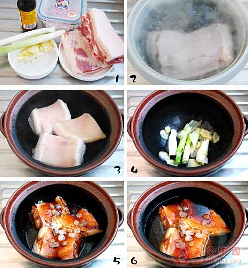 1五花肋肉洗干净,在沸水锅内煮5分钟。