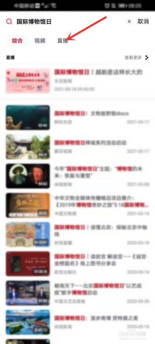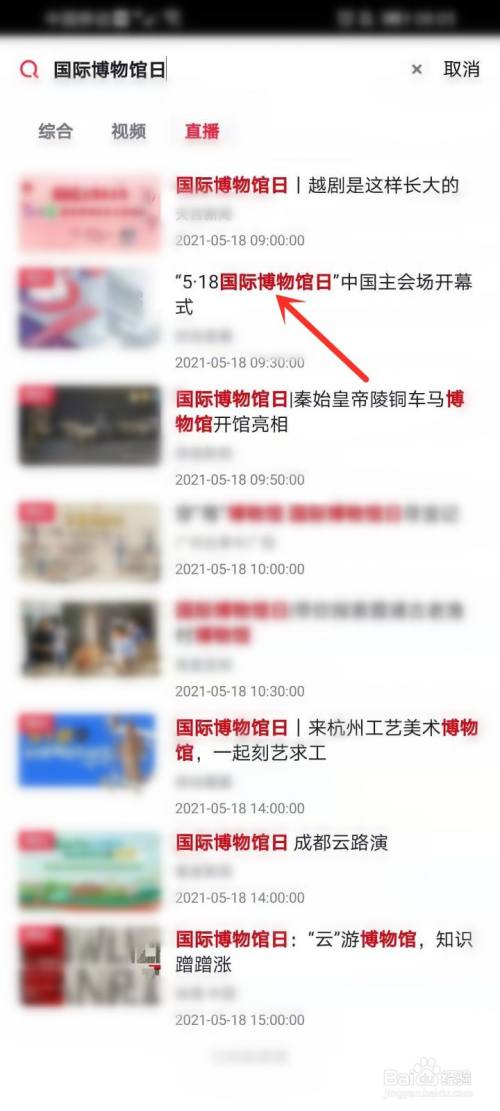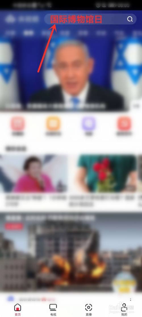 点击顶部的亲芬搜索框,进入搜索之常川界面,然后搜索“国际博物馆日”。