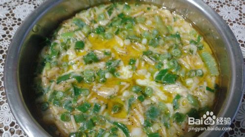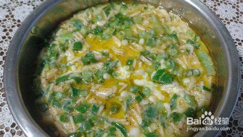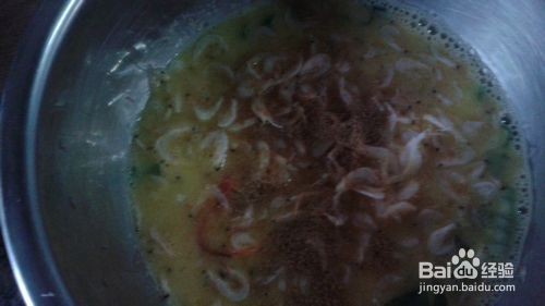 在鸡蛋液里再加入十三香,盐搅打均匀。
