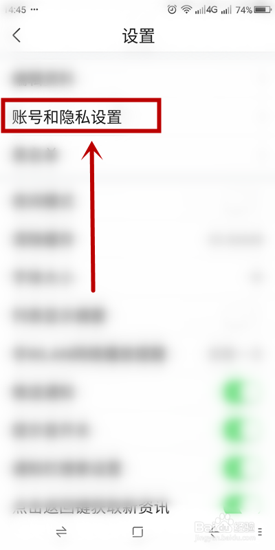 进入【设置】页面后,选择【账号和隐私设置】选项点击。