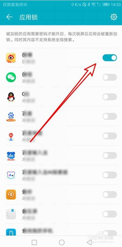 这时会打开应用锁的设置页面,找到要管理的应用。