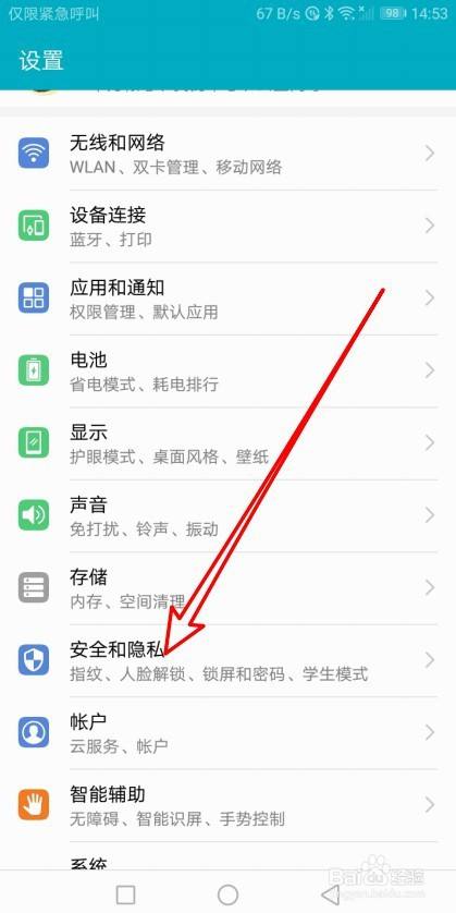 接着在打开的设置页面,点击安全和隐私的菜单。