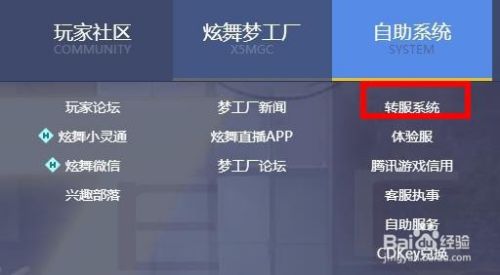 点击搜索炫舞游戏官网,找到最上方的自助服务选项,点击之后会显示出服务列表,选择下方的转区功能。