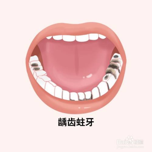 龋齿蛀牙:龋齿俗称虫牙、蛀牙,是细菌性疾病,因此它可以继发牙髓炎和根尖周炎,甚至能引起牙槽骨和颌骨炎症。如不及时治疗,病变继续发展,形成龋洞,终至牙冠完全破坏消失。未经治疗的龋洞是不会自行愈合的,其发展的最终结果是牙齿丧失。