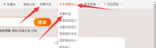 然后点击淘宝网右上角的免费开店,或者说点击右上角的千牛卖家中心,下面的免费开店都可以。