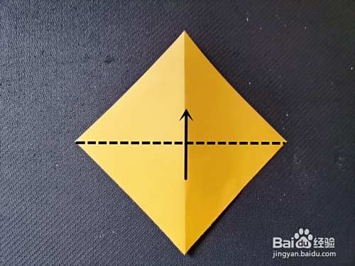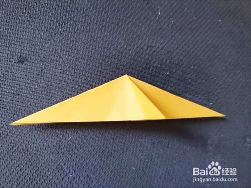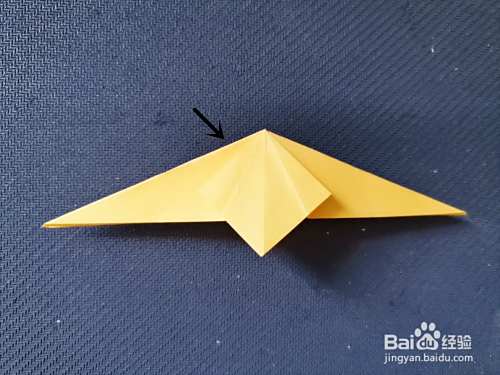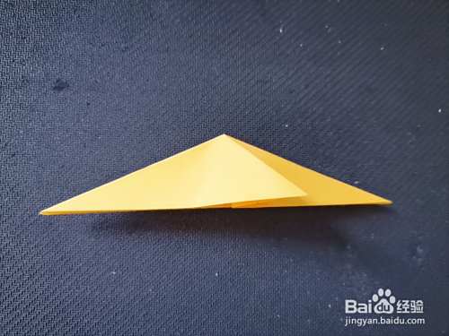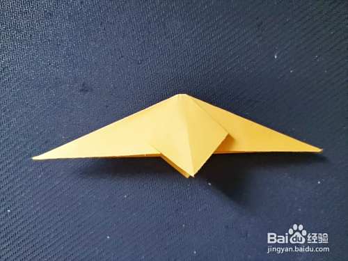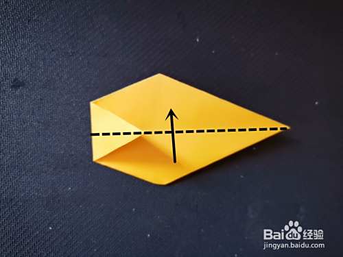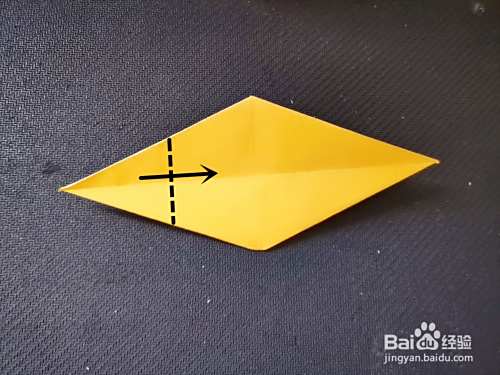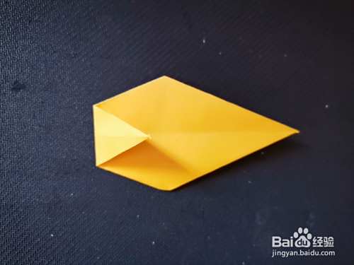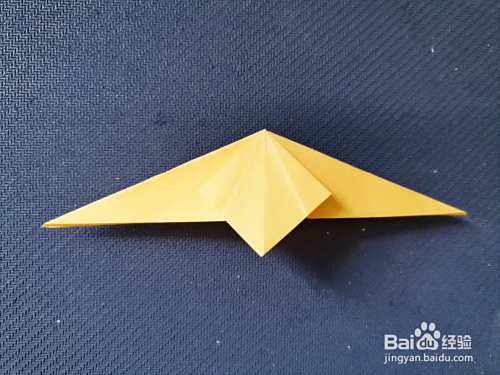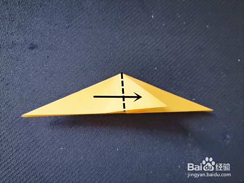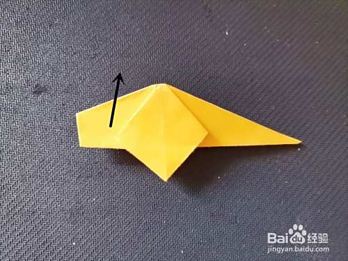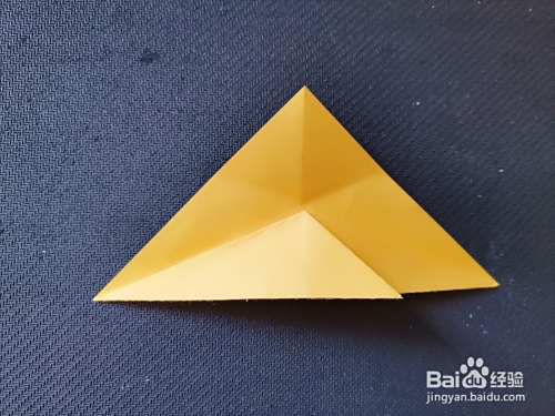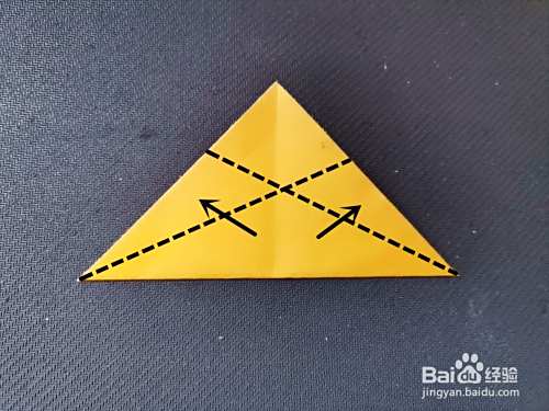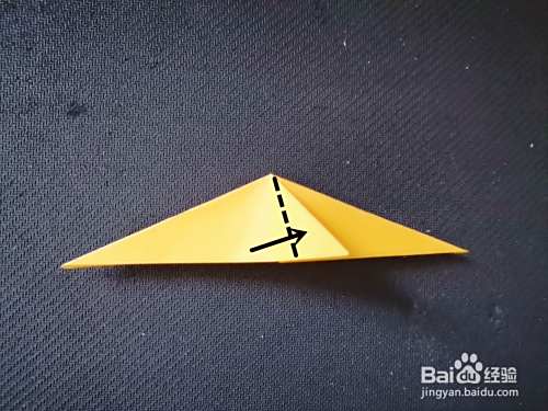 将上层沿着折痕捏起,向右侧压平,背面一样的折法,如下图所示。