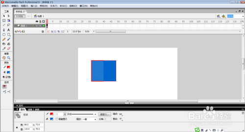 注意工具面板上的选项区和舞台下方的属性检查器有什么对应的选项,选取了矩形上被扭曲的那条边线,可以看到两个选项。