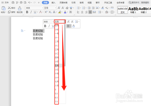 点击字号菜单栏后,打开字号大小对照表,可以选择想要的字号。