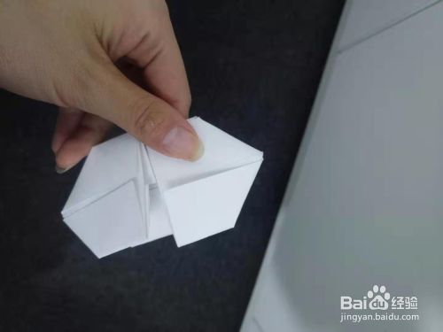 翻至背面,将正方形盒子折起。整理左右两边两个小尾巴。