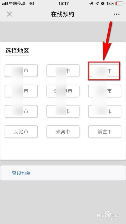 7.然后在弹出的地区列表中选择自己所在地的区域,点击进去。