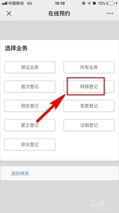 再在弹出的业务列表中选择“转移登记”,点击进去,然后在弹出的页面进行预约办理即可。