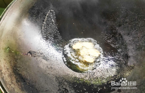 炒锅烧热,加少许菜籽油,菜籽油烧辣后,放入少许盐,再放入姜片爆香。