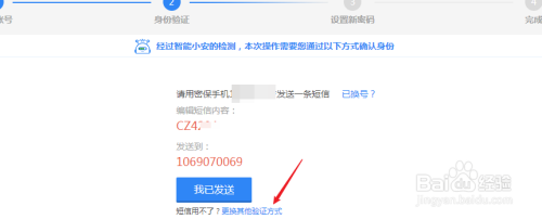根据提示,我们密码手机已经不能用,这时选择其他方式验证。