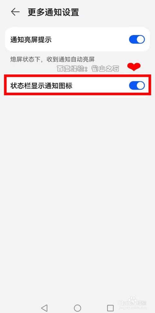 进入【更多通知设置】页面——点亮【状态栏显示通知图标】右侧的开关即可。