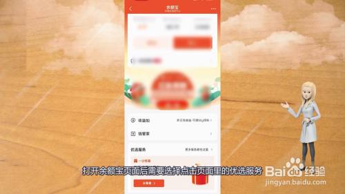 打开余额宝页面后需要选择点击页面里的优选服务。