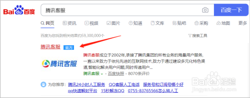 在百度搜索“腾讯客服”,找到腾讯客服官网。