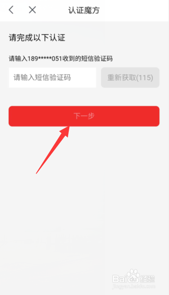 点击获取验证码及输入验证码之后点击下一步;
