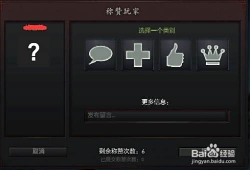 最后来看称赞玩家,同样有几种情况,选定一种,提交即可。