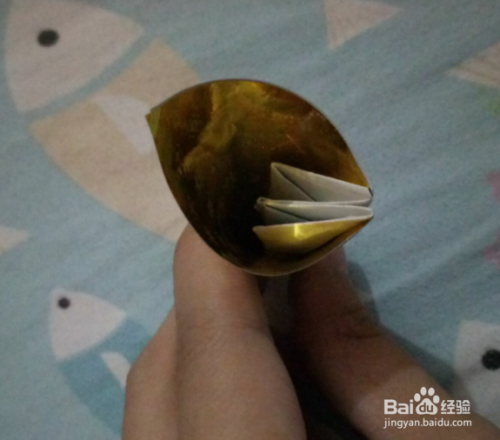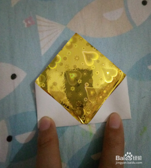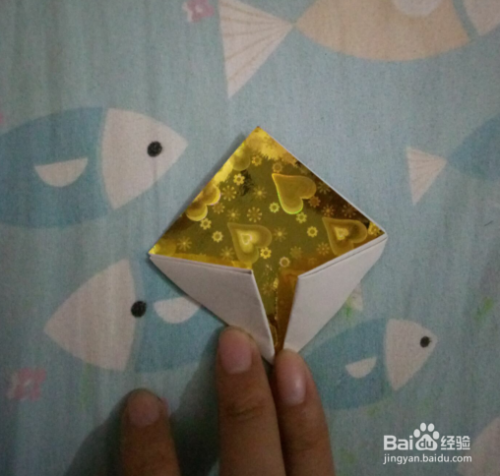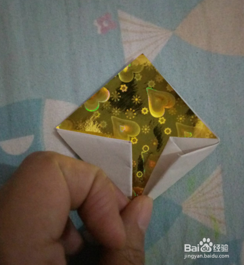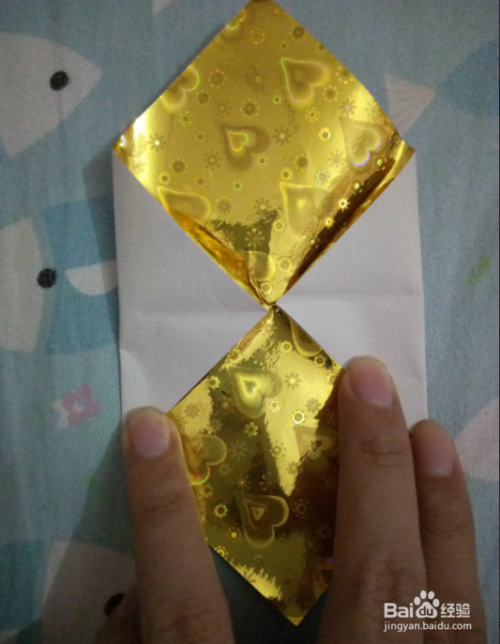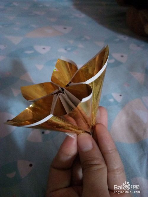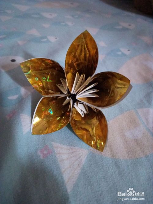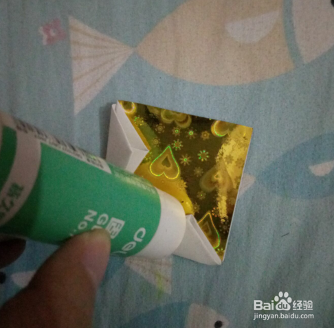 用胶水把两边两个两层的三角贴合起来,一个花瓣就做好了。