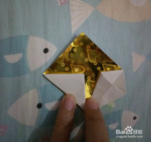 将折出来的两边又分别向里折,形成两层的样式,如图: