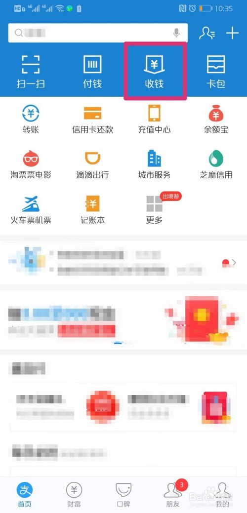 登录商家的支付宝,进入支付宝首页,点击页面上方的收款。