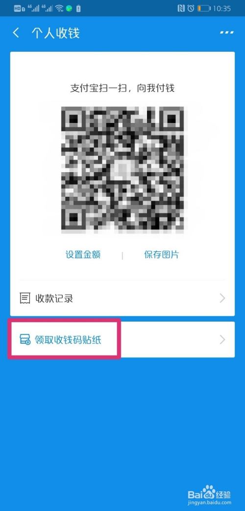 页面跳转,弹出个人收钱,点击领取收款码贴纸。