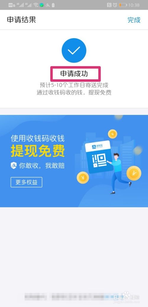 进入申请结果界面,页面弹出申请成功,等待5到10个工作日,就可以收到商家收款码了。