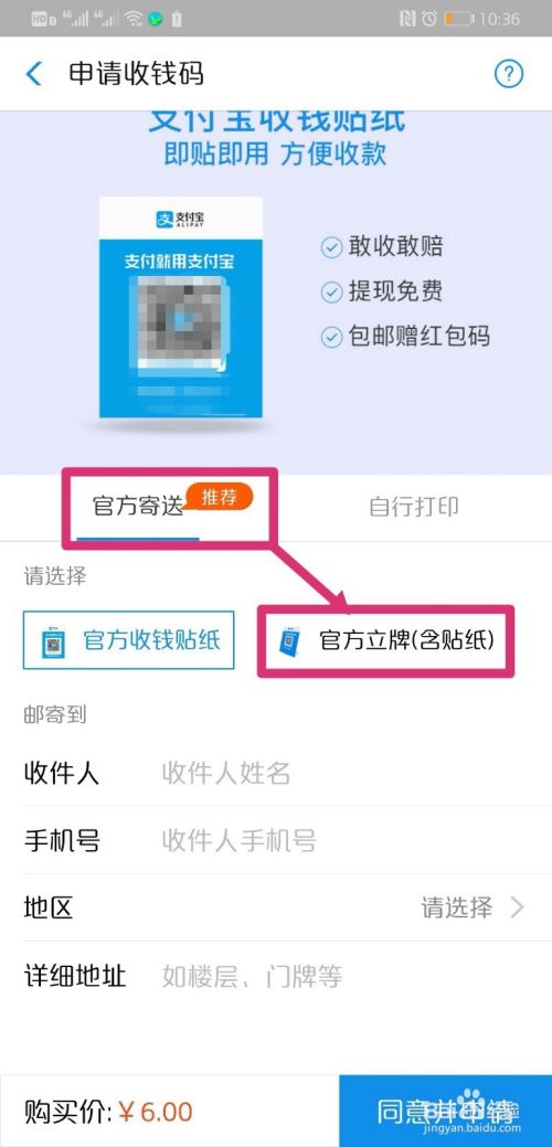 进入申请收钱码界面,选择官方寄送,也可以选择自行打印。
