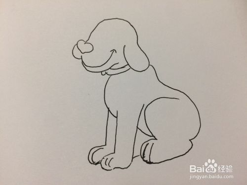 然后把狗狗的尾巴画出来,最后还有画出狗狗的眼睛和黑黑的鼻子。这样狗年可爱的狗狗就画好了。