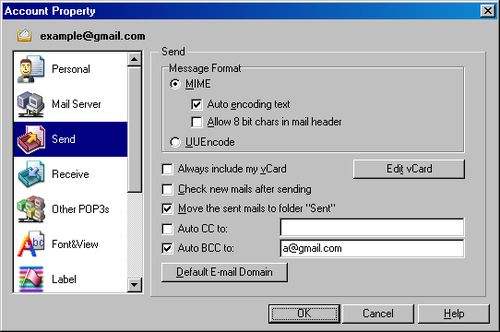 请打开foxmail,选择要设置密送的邮箱([email protected])右击查看属性(Properties),然后找到发送邮件(Send),将默认密送给(Auto BCC to)选项勾上,然后在后面的空白出填写上邮箱即可,如[email protected]。
