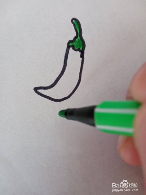 接下来画出辣椒的主体,辣椒的尾部向上翘起。