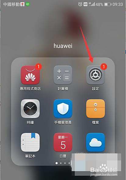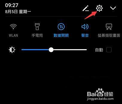 打开华为手机,下拉"通知栏",点击右上角进入"设置"页面。
