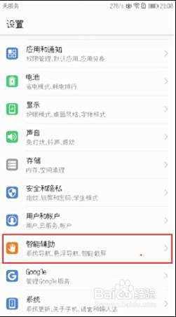 设置页面找到“智能助手”,有些手机是“智能辅助”,是一样的。