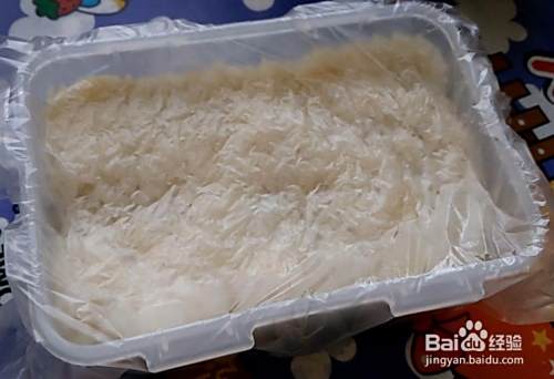 蒸熟糯米,然后放凉。