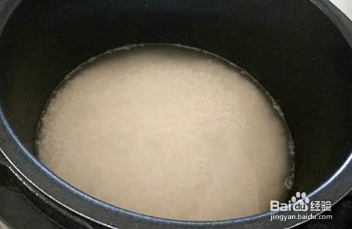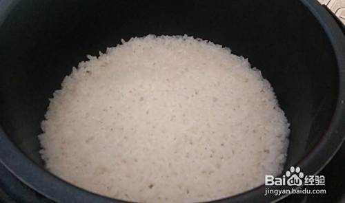 倒入锅中(大家别忘记淘米),放入和糯米一样厚度的水(如果大家没泡糯米,就多放一点水)。