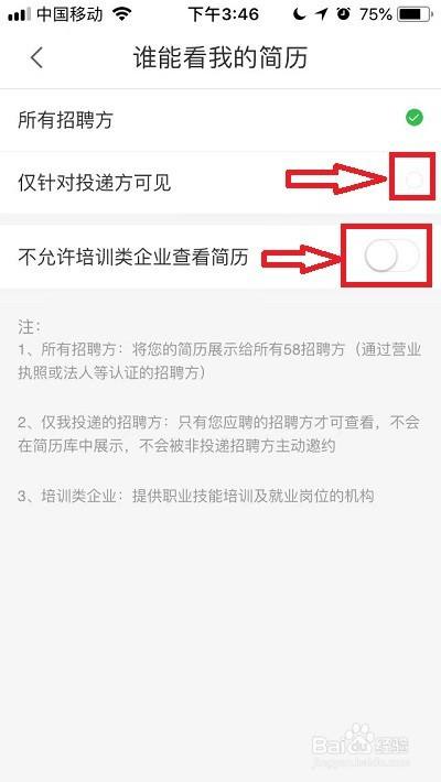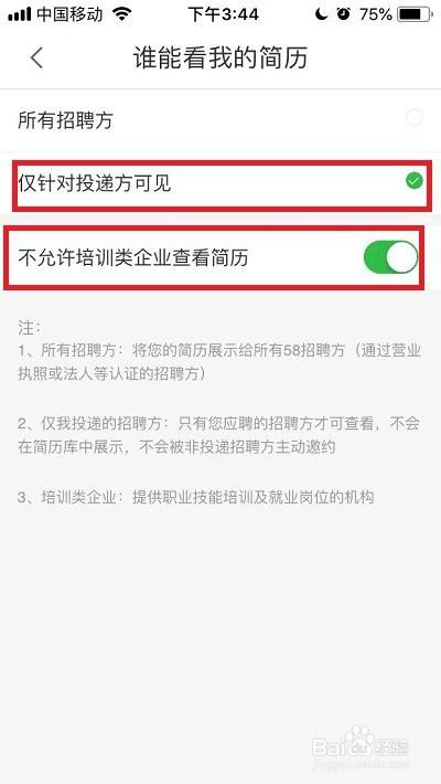 设置成仅对投递方可见,同时不允许培训类企业查看。