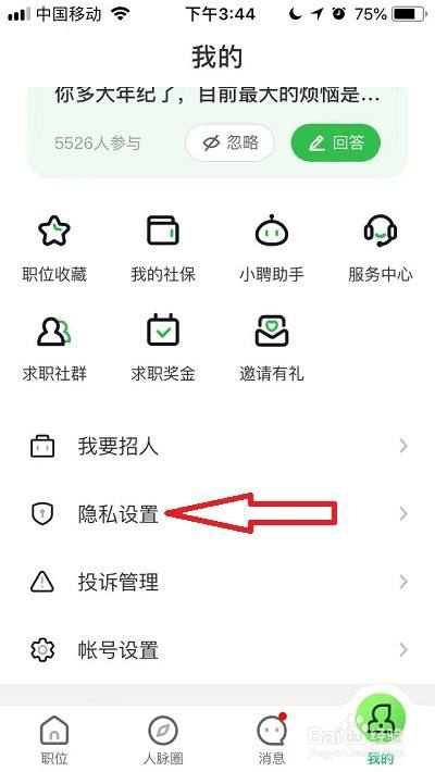 在赶集网我的页面,我们找到并点击【隐私设置】