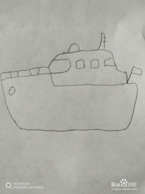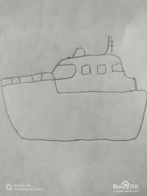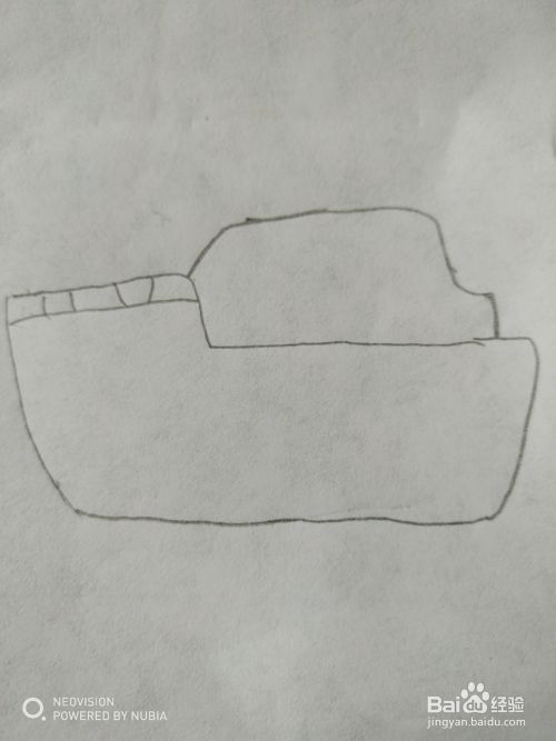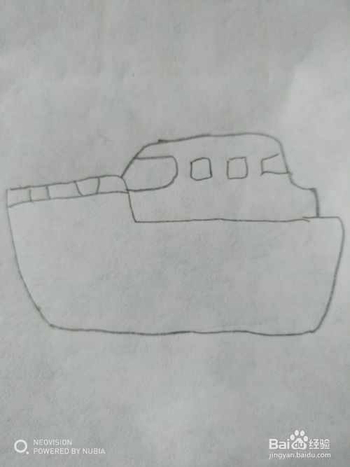 第四步,然后把游轮的船舱部分画出来。
