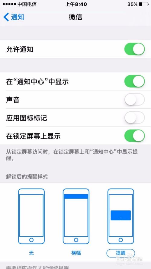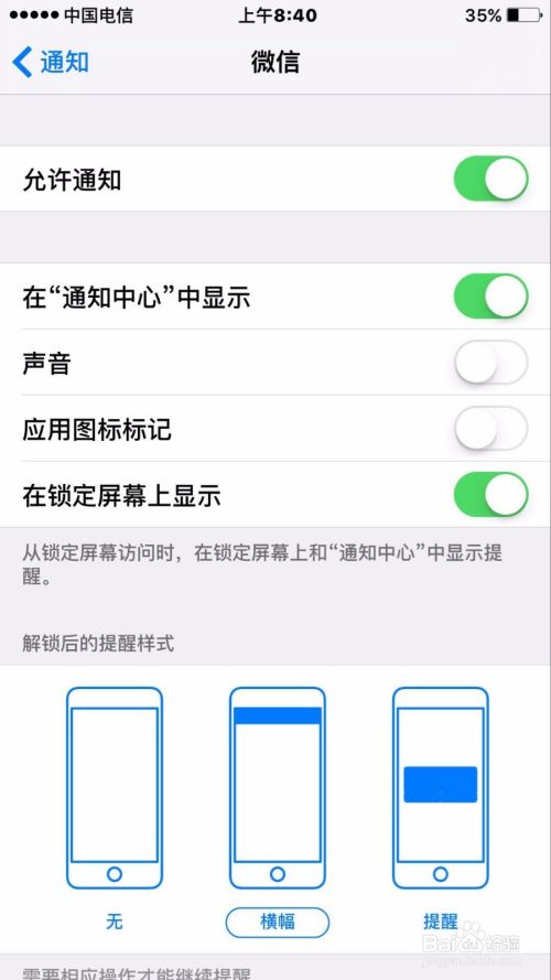 进入微信界面后,默认的解锁后提醒样式是横幅。
