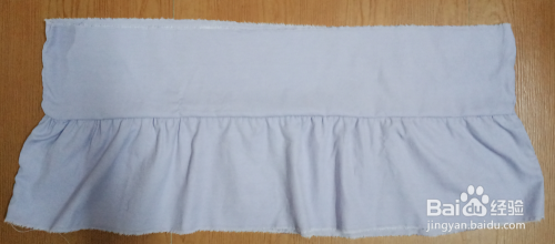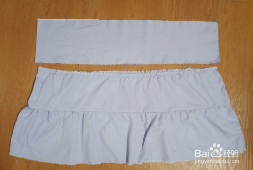 拿出底摆花边的多条布料,先拼接成一个圆环,然后对其一头锁边,另一头抽褶。