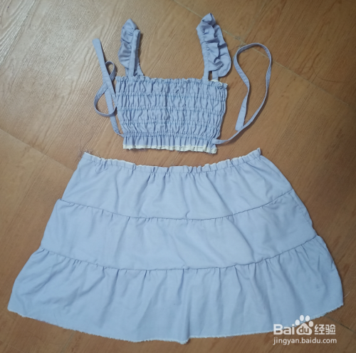将裙的上半身正面相对,反面朝上,车缝两侧边。