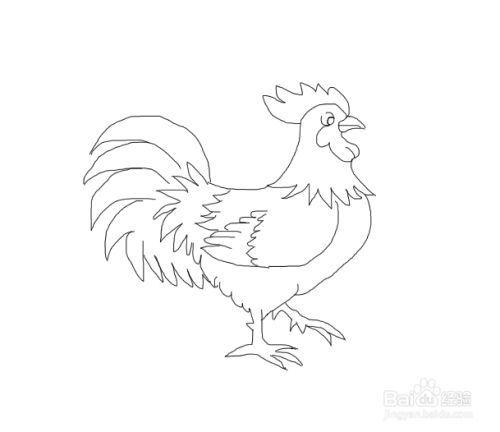 在身体的下面再画出大公鸡的两条腿,然后再画出大公鸡的爪子,这样大公鸡就画好了,如图所示: