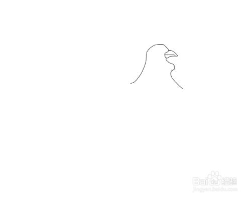 先在纸上画出大公鸡的头部轮廓,然后再画出大公鸡的嘴部,如图所示: