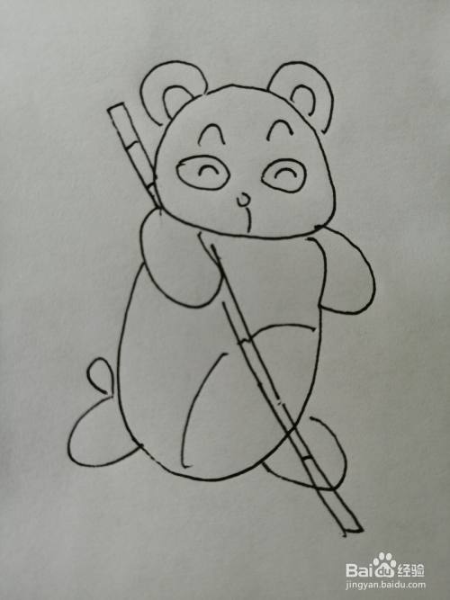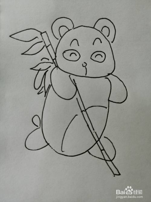 第七步,最后我们把可爱的小熊猫手上的竹叶画完,可爱的小熊猫就画好了。