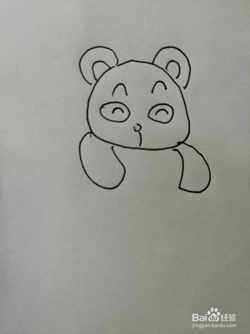 第二步,接着继续画出可爱的小熊猫的弯弯的眉毛和两只可爱的眼睛,小熊猫的眼睛又大又圆。