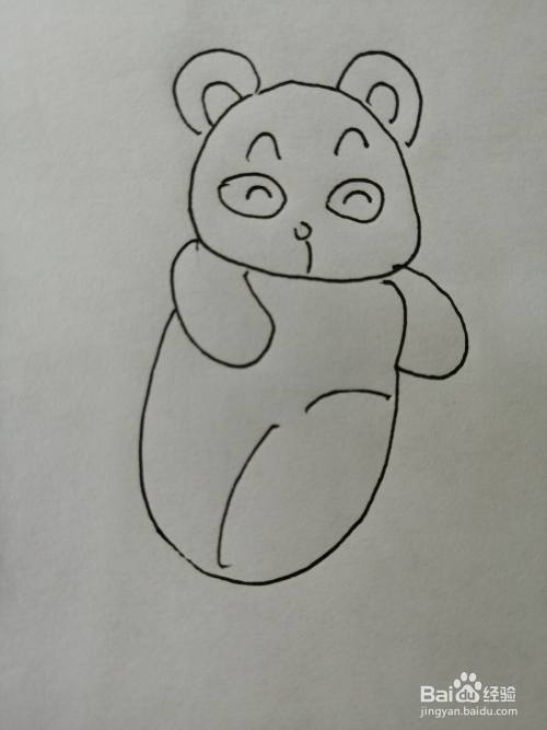 第五步,然后我们继续画出可爱的小熊猫的身体,注意小熊猫肚子上花纹的画法。