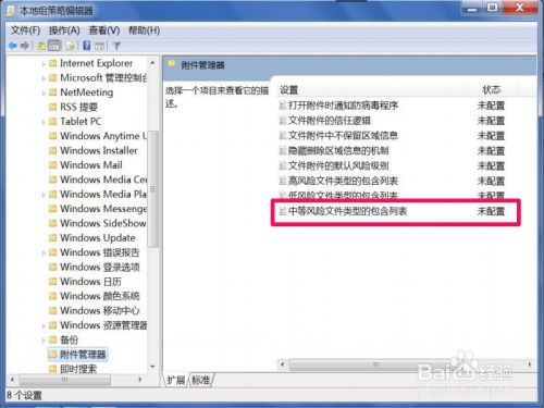 在附件管理器的右侧窗口,找到并双击“中等风险文件类型的包含列表”。