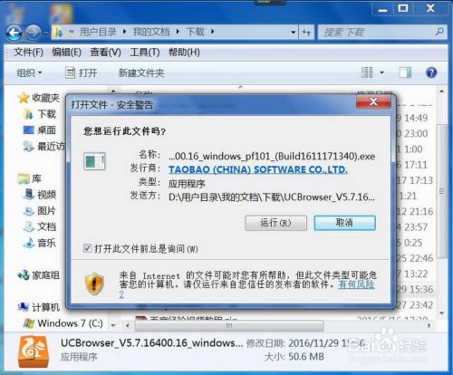把系统从XP换成Win7后,每次安装软件,都会弹出一个文件安全警告,如下图,若不明白,还以为文件有问题,不敢安装,要如何关闭这个讨厌的警告窗口?