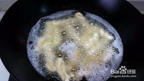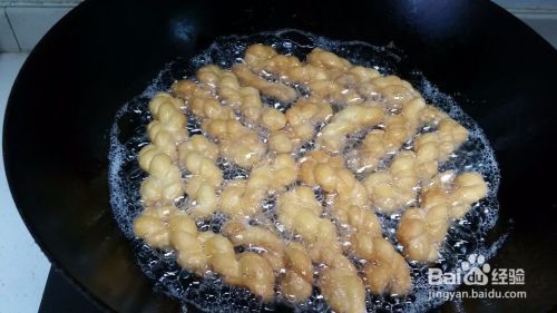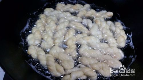 锅中倒入足够的油(至少能没过麻花),加热,放入麻花,用中小火。注意:要留出一些空间,因为麻花在炸的过程中会变大,至少能变大一倍。